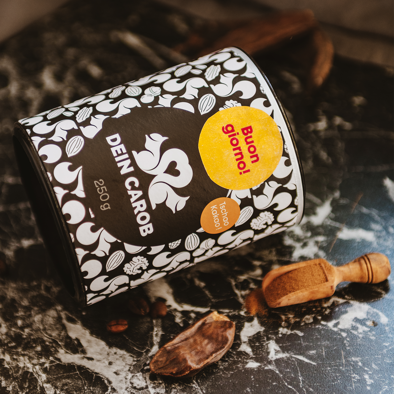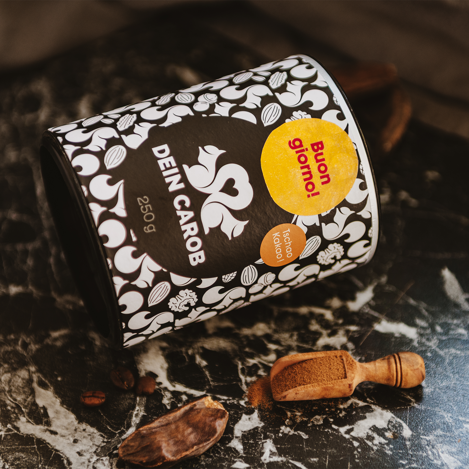 Carob ist das fein gemahlene Fruchtfleisch der Schoten des Johannisbrotbaums. Es schmeckt süßlich, malzig und leicht schokoladig – ganz ohne Koffein oder zugesetzten Zucker. Und damit eine perfekte Kakaoalternative.