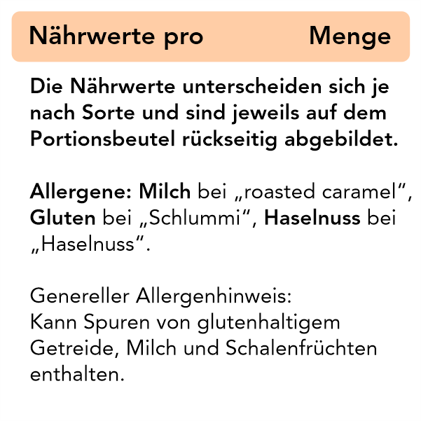 Auch hier haben wir eine Sorte „Schlummi“, die Gluten enthält, daher ist die MIXBOX an sich nicht glutenfrei. Alle anderen Sorten außer „Schlummi“ sind glutenfrei.