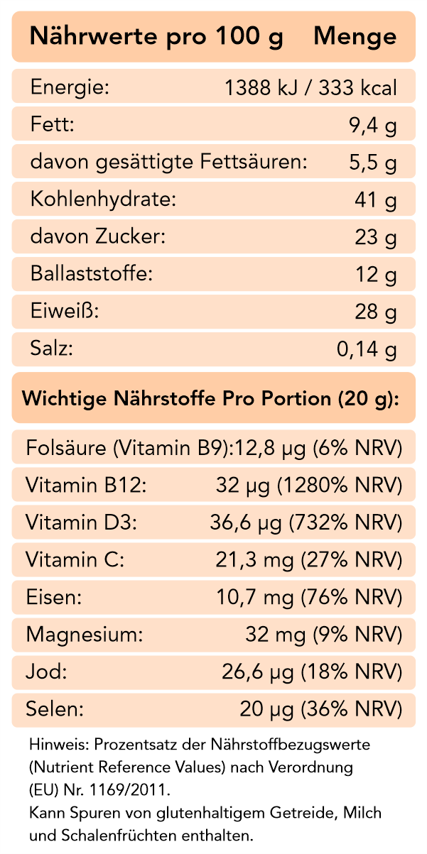 Die enthaltenen Vitamine und Mineralstoffe – darunter Folsäure, B12, C, D3, Eisen, Jod, Selen und Magnesium – entsprechen den Empfehlungen führender Fachinstitute und werden regelmäßig auf Qualität und Dosierung geprüft.